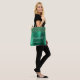 This elegant modern bridesmaid tote bag features an emerald green faux glitter border. Add her name in white handwriting script and the word "bridesmaid" or other title in sans serif font on an emerald green faux brushed metal background.