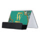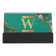 Emerald Green & Gold Agate Geode Glitter Monogram Desk Business Card Holder