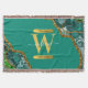 Emerald Green & Gold Agate Geode Glitter Monogram Throw Blanket