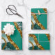 Emerald Green & Gold Agate Geode Glitter Wrapping Paper Sheets