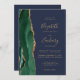 Emerald Green Gold Agate Navy Blue QR Code Wedding Invitation