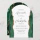 Emerald Green Gold Agate Script Arch Wedding Invitation