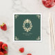 Luxurious emerald green and gold baroque wedding napkins featuring an ornate vintage monogram crest with couple’s initials. Perfect for adding a touch of elegance to your wedding reception, cocktail hour, or rehearsal dinner. These personalized napkins make a timeless accessory for a regal emerald and gold wedding theme, impressing your guests with every detail.