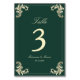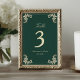 Emerald Green Gold Baroque Wedding Table Number