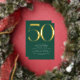 Modern 50th birthday invitations with a large heading "50" in real metallic foil. Your event details are printed below in matte white font. Gold foil on an emerald green background.