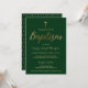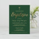 Emerald Green Gold Cross Custom Boy Baptism Invitation