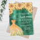 Emerald green gold dress floral Quinceanera Invitation