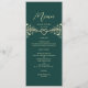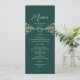 Elegant emerald green and gold wedding menu card featuring delicate floral details and a romantic rope heart design. Perfect for formal receptions, fall or winter weddings, and sophisticated banquet dinners. Personalize with your names, date, and custom menu selections to create a unique touch for your special day. Coordinates beautifully with matching emerald and gold wedding invitations, signs, and stationery from the same collection.