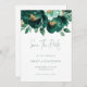 Emerald Green and Gold Florals QR Code Wedding. Gorgeous green florals and foliage and an elegant set script for Save The Date. The rest of the text you can easily personalise with your details. Add your QR code to your wedding website on the back or delete this and the text on the back if not required. Available digitally or printed.