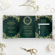 Emerald Green Gold Leaf Branch All in One Wedding Tri-Fold Invitation