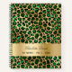 Elegant, cool, glamorous and feminine with emerald green and faux gold leopard pattern. Personalize and add your name and a title. The name is written with a modern hand lettered style script.