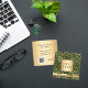 A emerald green and faux gold leopard pattern as background on the front. Personalize and add your business logo and text on front.