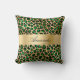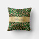 Emerald green gold leopard name elegant script throw pillow