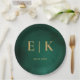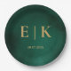 Emerald Green & Gold Monogram Wedding Paper Plates