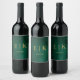 Emerald Green & Gold Monogram Wedding Wine Label