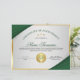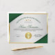 Professional certificate of achievement award design features emerald green, gold, and grey colors with detailed lines and a gold border. Includes gold medal award and stars.