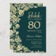 Emerald Green Gold Roses Surprise 80th Birthday Invitation