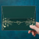 Stylish emerald green and gold floral wedding envelope featuring elegant botanical accents and a romantic heart motif. Designed to match the emerald green and gold wedding invitation suite, this envelope adds a luxurious finishing touch to your wedding stationery set.