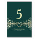 Stylish emerald green and gold wedding table number card with floral accents and a romantic rope heart design. Perfect for helping guests easily locate their tables at your reception. Ideal for elegant, modern, or classic weddings in any season. Personalize with your table numbers and wedding details. This design coordinates beautifully with matching invitations, seating charts, menus, programs, and stationery from the emerald and gold wedding collection.