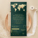 Emerald Green Gold World Map All in One Wedding Tri-Fold Invitation