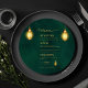 Emerald Green Golden Light Round Wedding Menu Card