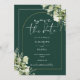 This elegant emerald green botanical greenery floral gold arch save-the-date invitation can be personalized with your information in chic modern typography with your wedding website QR code and details on the reverse. Designed by Thisisnotme©