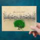 Emerald Green Heart Leaf Tree with Two Whimsical Love Birds Flying On a Swirly Faux Burnt Parchment