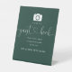 Emerald Green Heart Script Photo Guest Book Pedestal Sign