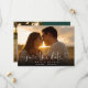 This elegant heart script photo save the date card features your photo and a script save the date above your names, date and venue. The reverse features an additional photo, message, and wedding website QR code on an emerald green background. Designed by Thisisnotme©