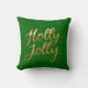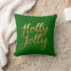 Emerald Green Holly Jolly - Gold Script Decor Throw Pillow