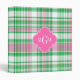 Emerald Green Hot Pink Wht Preppy Madras Monogram 3 Ring Binder