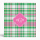 Shades of Emerald Green, Hot Pink and White Preppy Madras Style Plaid Pattern Hot Pink Quatrefoil Monogram