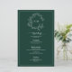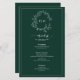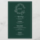 Emerald Green Leafy Crest Monogram Wedding Menu