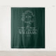 Create the perfect reception! We're loving this trendy, modern emerald green wedding tapestry! Simple, elegant, and oh-so-pretty, it features a hand drawn leafy wreath encircling a modern wedding monogram. It is personalized in elegant typography, and accented with hand-lettered calligraphy. Finally, it is trimmed in a delicate frame. View suite here: https://www.zazzle.com/collections/emerald_green_leafy_crest_monogram_wedding-119957580948924617 Contact designer for matching products to complete the suite, OR for color variations of this design. Copyright Anastasia Surridge for Elegant Invites, all rights reserved.