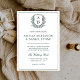Emerald Green Leafy Floral Crest Monogram Wedding Invitation