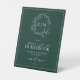 Emerald Green Leafy Monogram Wedding Guestbook Pedestal Sign
