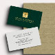 This luxury business card features a sophisticated emerald green leather-textured illustration and your business logo over faux gold overlay, offering a premium and professional aesthetic. Your name, profession, or firm name is prominently displayed in luxurious gold color lettering, ensuring a timeless and memorable presentation. The combination of the textured background and gold accents exudes elegance and authority. This business card design is ideal for professionals who seek to convey a sense of trust, reliability, and sophistication. It is suitable for a wide range of industries, including: Estate Planners, Attorneys