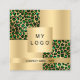 Emerald green leopard gold pattern logo QR code Square Business Card