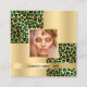 A faux gold and emerald green leopard block pattern as background. Personalize and add a photo, and text on the front.