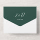 All in one emerald green wedding invitation featuring elegant hearts script typography and monogram initials. The invitation includes a perforated RSVP card with your wedding website QR code and details. Designed by Thisisnotme©