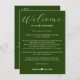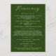 Emerald green minimalist wedding weekend itinerary enclosure card