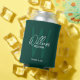 Emerald Green Modern Script Personalized Groomsmen Can Cooler