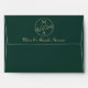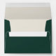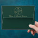 Simple, elegant, modern emerald green 5x7 envelope for wedding invitation with monogram initials on the top flap with unique romantic couple love birds gold foil drawing.