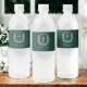 Emerald Green Monogram Wedding Floral Crest Water Bottle Label