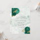 Design features a printed colored with floral element in shades of emerald over gold leaves greenery and peony flowers on a light green watercolor background. Great for your wedding celebrations!