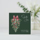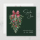 Emerald Green Pine and Bow Christmas Wedding Save the Date Card. Announce your holiday wedding with this elegant Save the Date featuring a festive pine swag, red berries, pinecones, and a dusty rose bow. A cozy seasonal design for winter weddings with timeless Christmas charm.