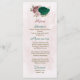 Beautiful romantic wedding menu card featuring emerald green and pink flowers and some leaves .