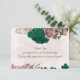 Beautiful romantic wedding thank you card featuring emerald green and pink flowers and some leaves .