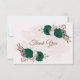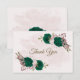 Beautiful romantic wedding thank you card featuring emerald green and pink flowers and some leaves .