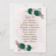 Beautiful romantic seating chart card featuring emerald green and pink flowers and some leaves .